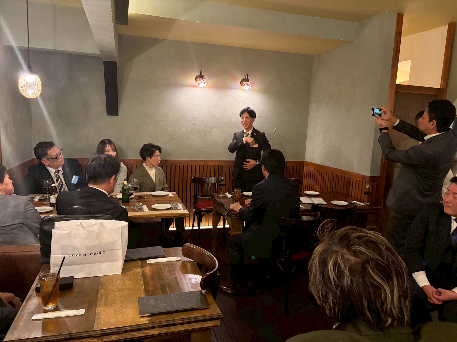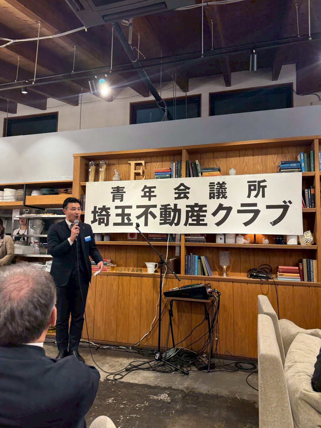 今年度最後の例会は、会長の出身である所沢の地で開催されました。会場となったESPRESSO D Works所沢店は、美味しい焼きたて食パンが魅力的な落ち着いた雰囲気のカフェです。オープニングでは忘年会で出演予定だったミュージシャンMasaki.さんによるサックスの生演奏で来場者をお出迎えさせていただきました。